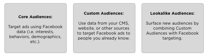 Facebook provides three distinct targeting strategies for marketers.