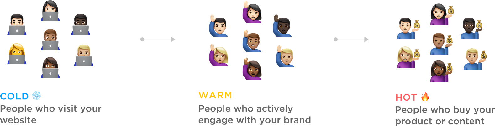 When your first ad campaign is underway, plan on doing as much work as you can to transition your audiences from “cold” to “hot.” “Hot” leads are those audiences that have already demonstrated interest in your brand. Interest can take several forms: