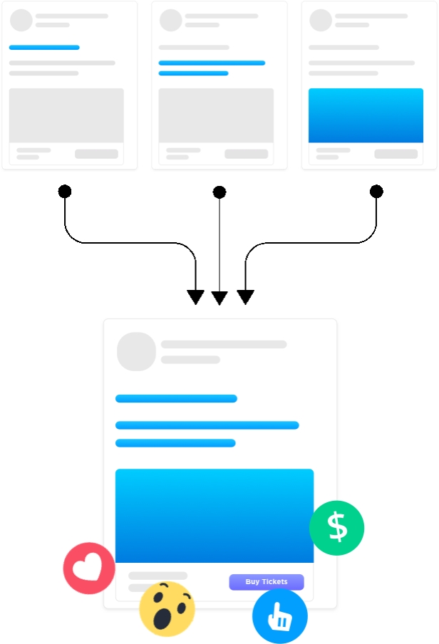 This is why A/B testing is crucial to any event marketer’s gameplan. By including more ad sets in your campaign, you’ll find different segments of fans interested in buying tickets and see a much higher return on ad spend as a result.