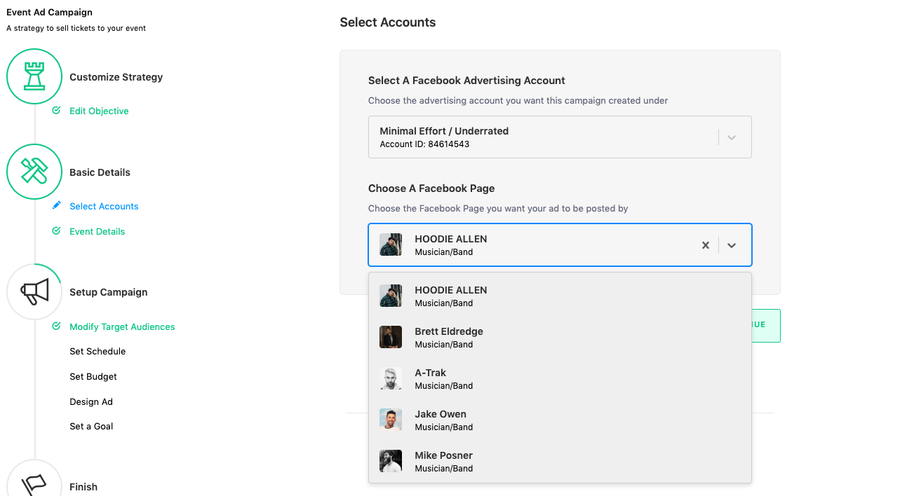Choose the Facebook Advertising Account you spend with the most frequently.