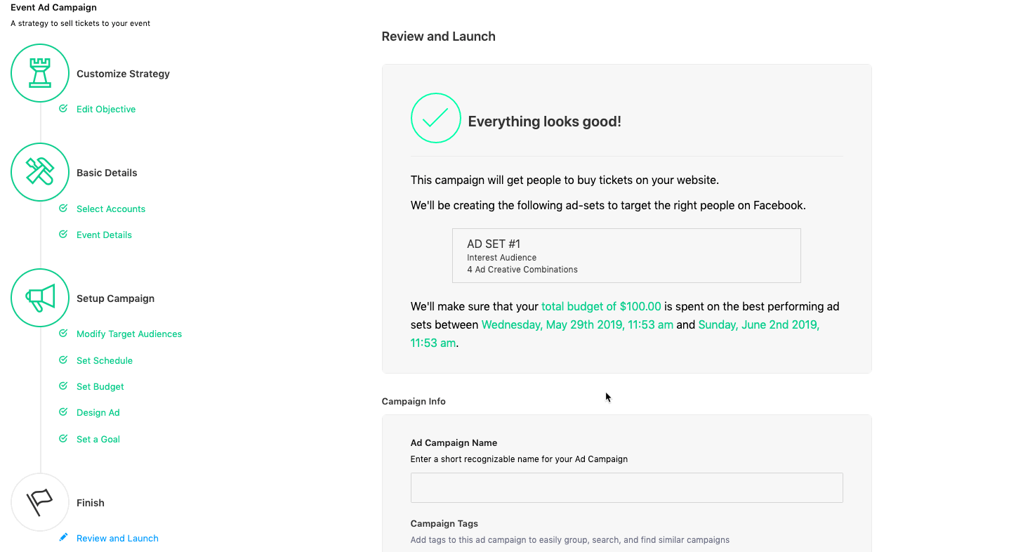 Finish by naming your campaign and then choosing to launch or save as a draft.