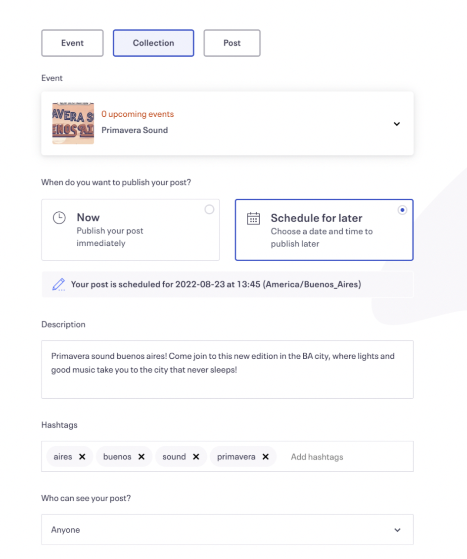 * Use prefilled information to create your posts from events you already have created.&#x20;